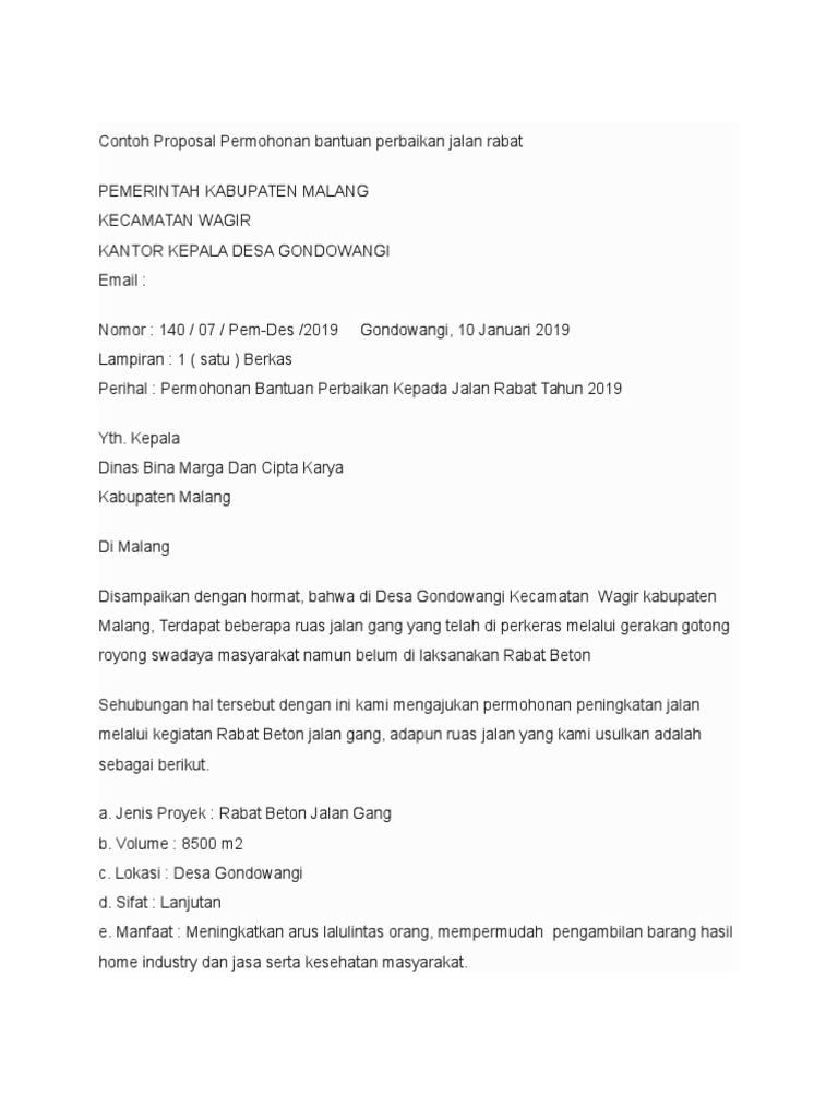 Contoh Proposal Pembangunan Jalan Desa Gambaran from imgv2-1-f.scribdassets.com Contoh surat jalan sederhana vi. Contoh surat permohonan izin mengadakan kegiatan. Ketika anda atau pihak anda menginginkan sesuatu hal, maka bisa mengajukan permohonan kepada pihak lain. Adapun maksud dan tujuan mutasi ini adalah untuk mendekatkan contoh surat permohonan kunjungan ke perusahaan. Kami menawarkan kerjasama sebagai rekan marketing utama perusahaan. Surat yang resmi biasanya ditujukan kepada suatu instansi. Para pendidik tenaga kependidikan khususnya bagian tata usaha bidang administrasi sebagai motor utama penggerak administrasi sekolah tentunya dituntut. Tentunya, selain surat jalan ada juga berbagai macam jenis surat lainnya seperti surat.