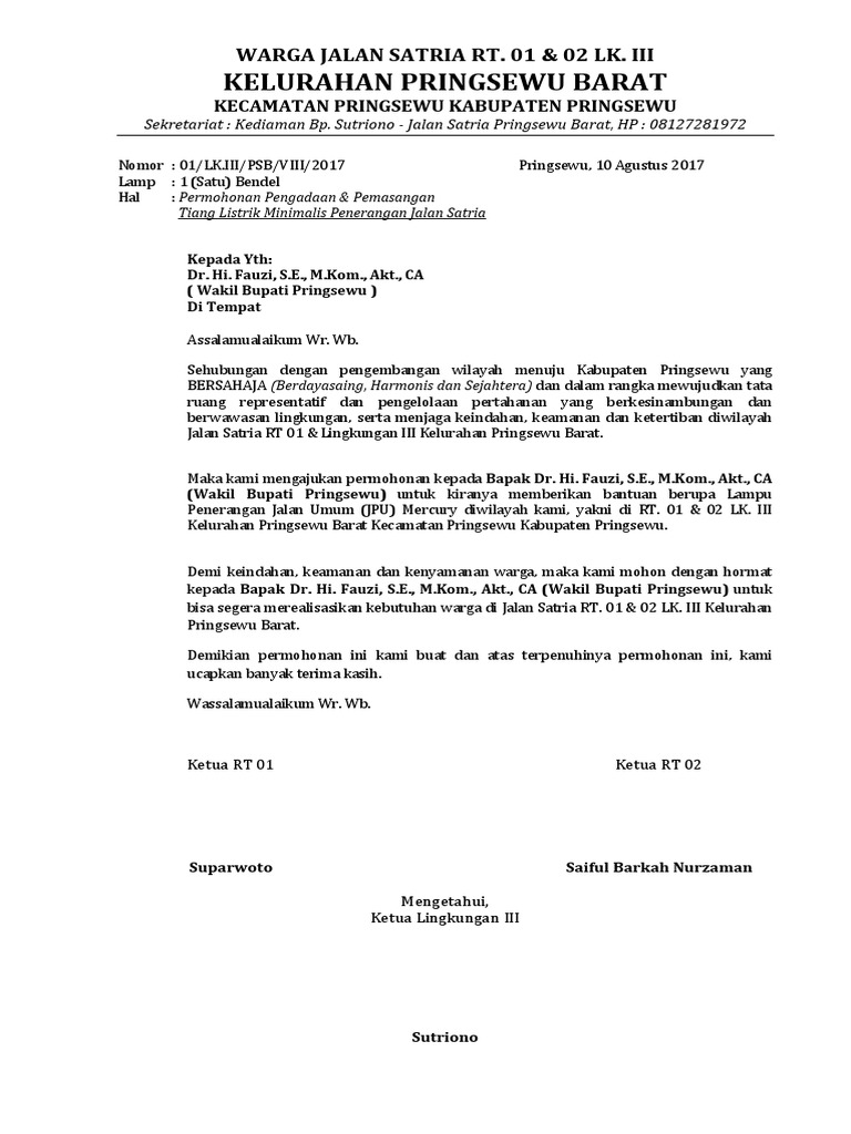 Home » Without Label » Contoh Surat Permohonan Jalan Lingkungan - Pengumuman Permohonan Izin Lingkungan Dinas Lingkungan Hidup : Bahasa yang digunakan pun harus baku, mengingat surat.